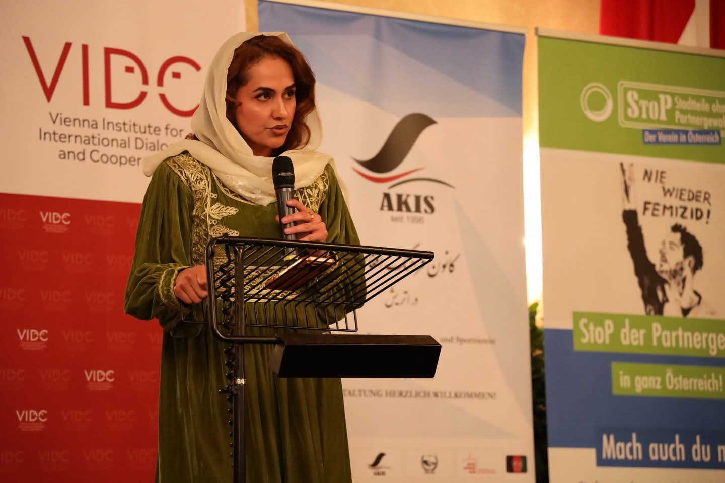 Unter der Moderation von Gawhar Musleh, Vorstandsmitglied von AKIS, und Michael Fanizadeh vom VIDC wurde der Abendempfang von der neuen Wiener Frauenstadträtin Elke Hanel-Torsch eröffnet. Sie dankte dem Verein AKIS für dessen Engagement, Mut, Menschlichkeit und Solidarität. Hanel-Torsch hob hervor, dass der Verein mit seiner Arbeit einen großartigen Beitrag im kulturellen Bereich leiste – insbesondere durch die Arbeit mit jungen Männern, die im Rahmen der Vereinsaktivitäten geschult würden, um Radikalisierung vorzubeugen.