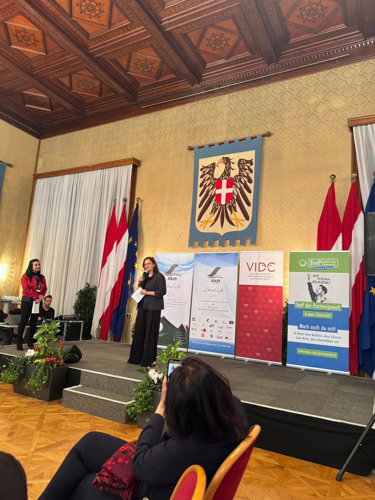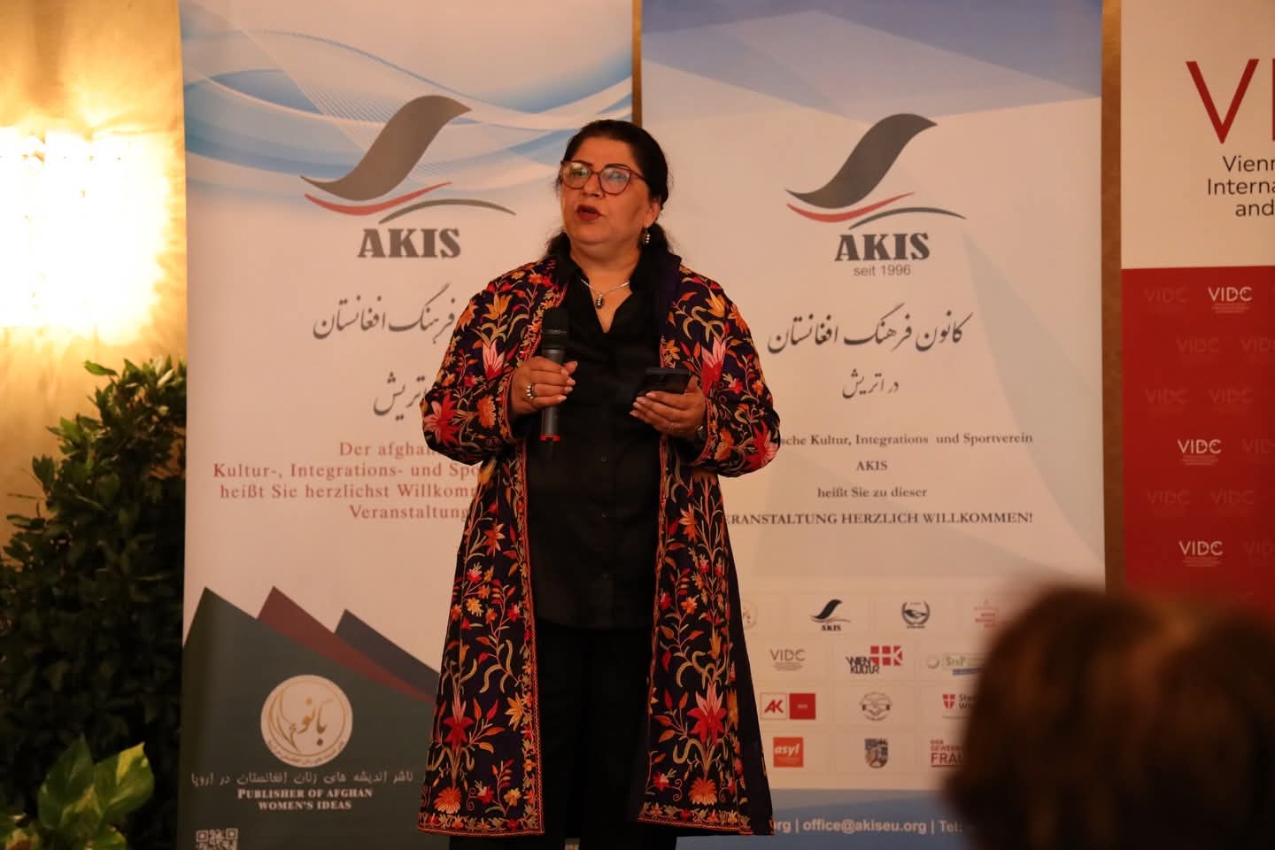 Anlässlich des 30-jährigen Jubiläums des afghanischen Kultur-, Integrations- und Sportvereins AKIS und des 26-jährigen Bestehens des Banu-Frauenmagazins veranstaltete der Verein am 10. April 2026 eine Konferenz mit Abendempfang – in Kooperation mit dem VIDC und der Arbeiterkammer Wien (Abteilung für Frauen und Gleichstellungspolitik). Die Veranstaltung begann mit einer halbtägigen Tagung und erreichte ihren Höhepunkt in einem feierlichen Empfang im Wappensaal des Wiener Rathaus. Rund 200 Gäste aus acht europäischen Ländern, darunter vor allem Frauen aus der afghanischen Diaspora sowie Vertreterinnen der österreichischen Politik, nahmen an der Veranstaltung teil.