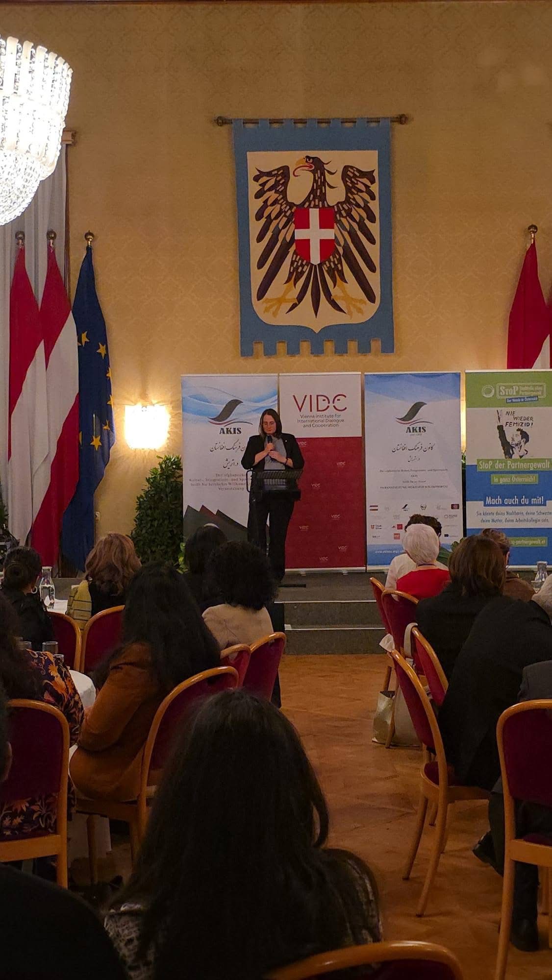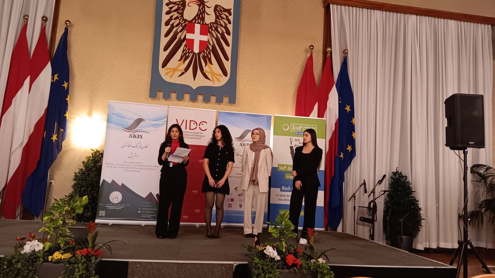 Sybille Straubinger, Director of VIDC, and Vera Glassner from the Vienna Chamber of Labor, as cooperation partners of AKIS, reaffirmed their commitment to the fight against the systematic oppression of women and girls in Afghanistan and for successful integration into Austrian society. Straubinger emphasized that, given the many global crises, there is a danger that the ongoing situation in Afghanistan will be forgotten. While the world often focuses only on the current crisis, Afghanistan remains a catastrophic reality for the people on the ground, especially for women. To ensure this issue does not lose focus, the VIDC, together with other initiatives, drafted a letter to all 183 members of the Austrian Parliament, calling for gender apartheid to be recognized as a crime against humanity and enshrined in international law.