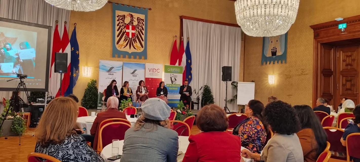 To mark the 30th anniversary of the Afghan Cultural, Integration, and Sports Association AKIS and the 26th anniversary of Banu Women’s Magazine, the association organized a conference with an evening reception on April 10, 2026—in cooperation with the VIDC and the Vienna Chamber of Labor (Department for Women and Gender Equality Policy). The event began with a half-day conference and culminated in a festive reception in the Wappensaal of the Vienna City Hall. Around 200 guests from eight European countries, including primarily women from the Afghan diaspora as well as representatives of Austrian politics, attended the event.